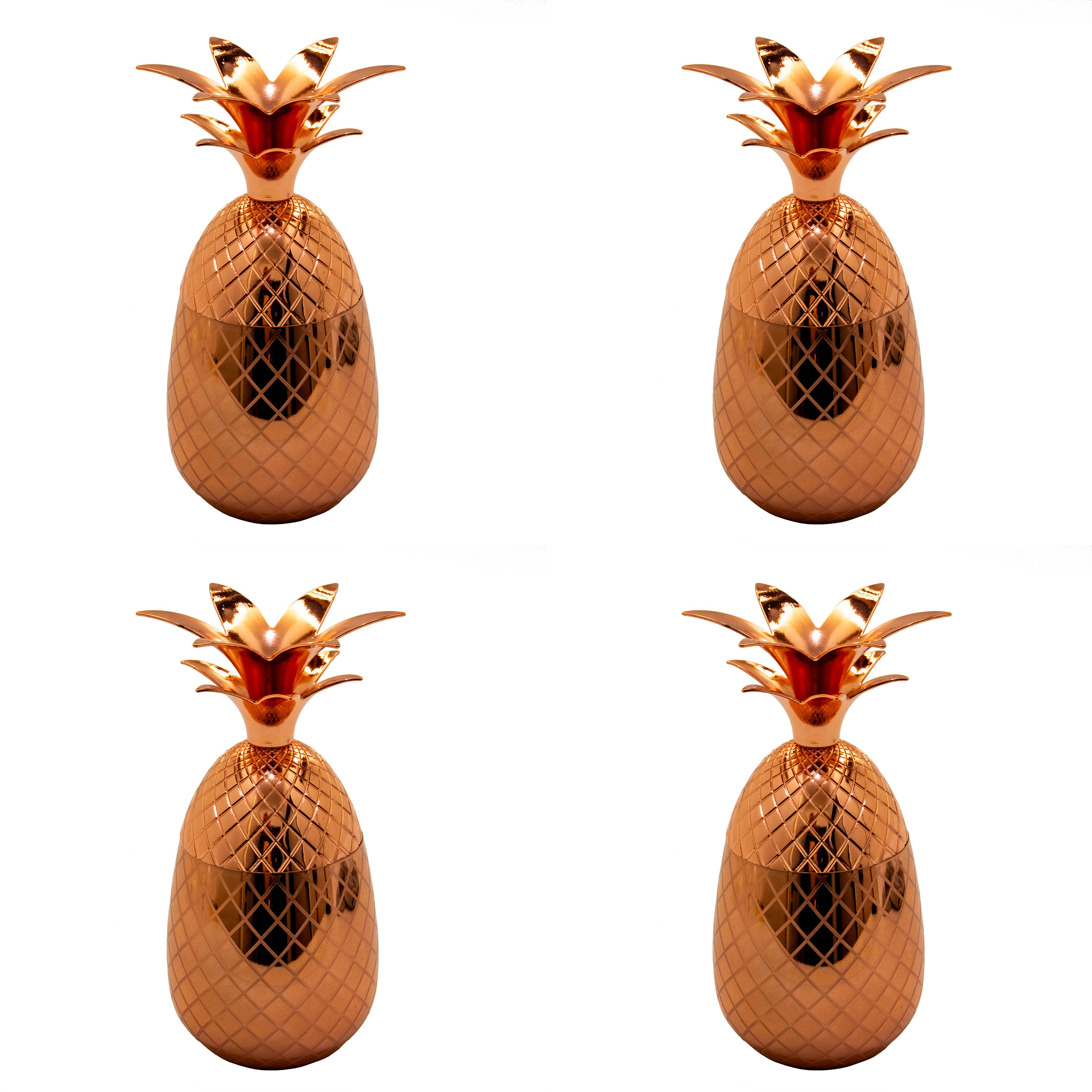 AcMax 4 Stück Ananas Becher Kupferbecher gehämmert Cocktailbecher mit Hammerschlag