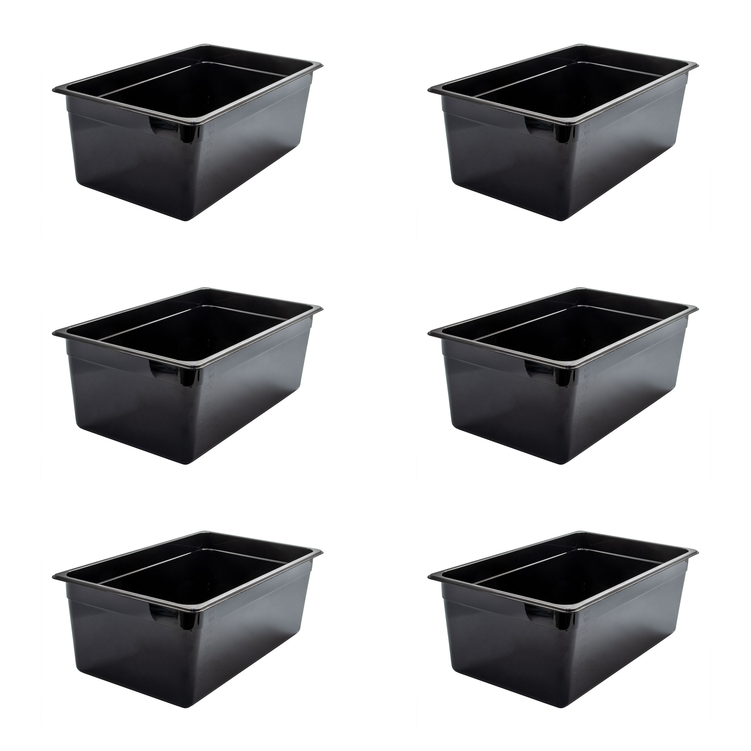 AcMax 6 Stück Kunststoff GN 1/1 Polycarbonat schwarz Gastronormbehälter GN-Behälter 28 Liter Tiefe 200mm