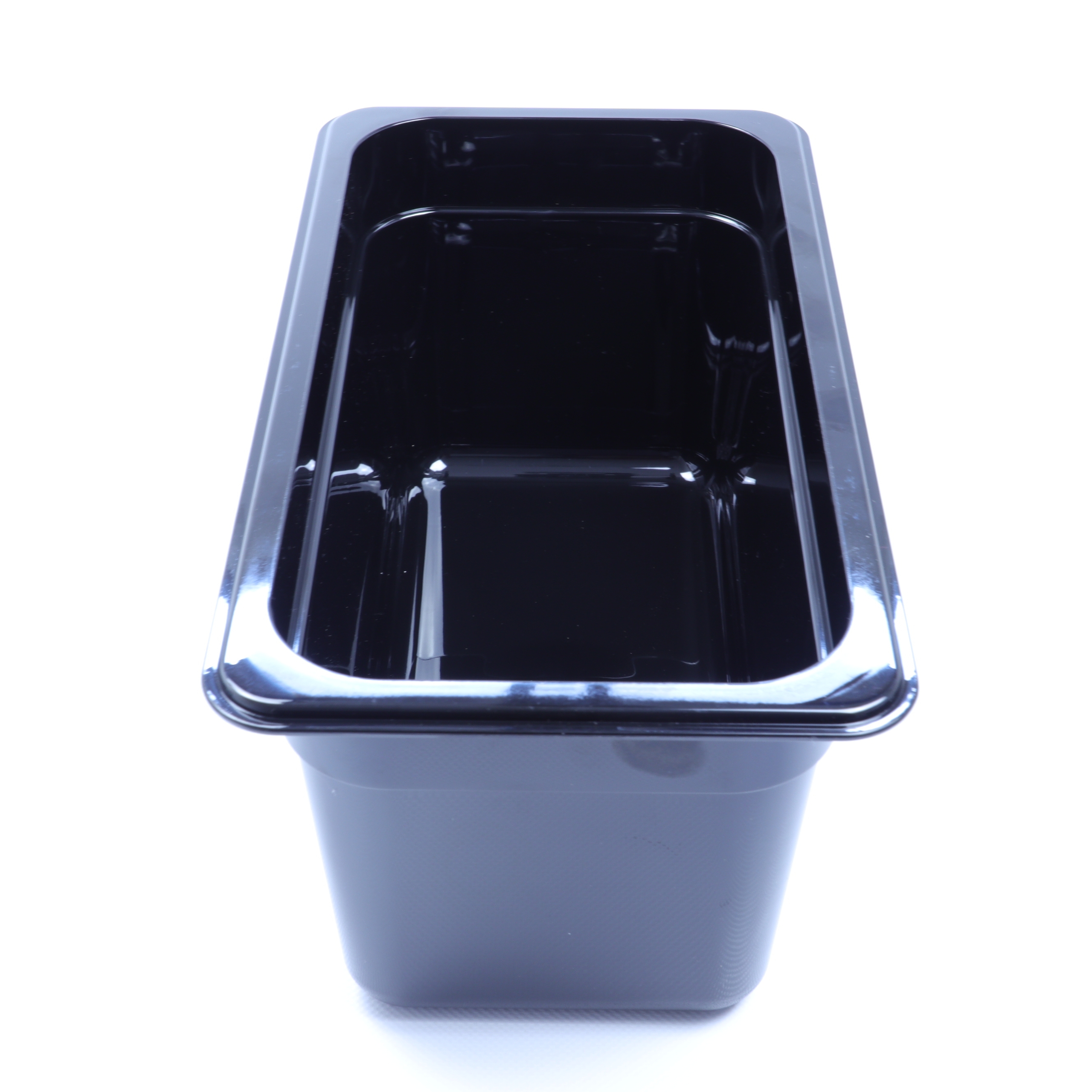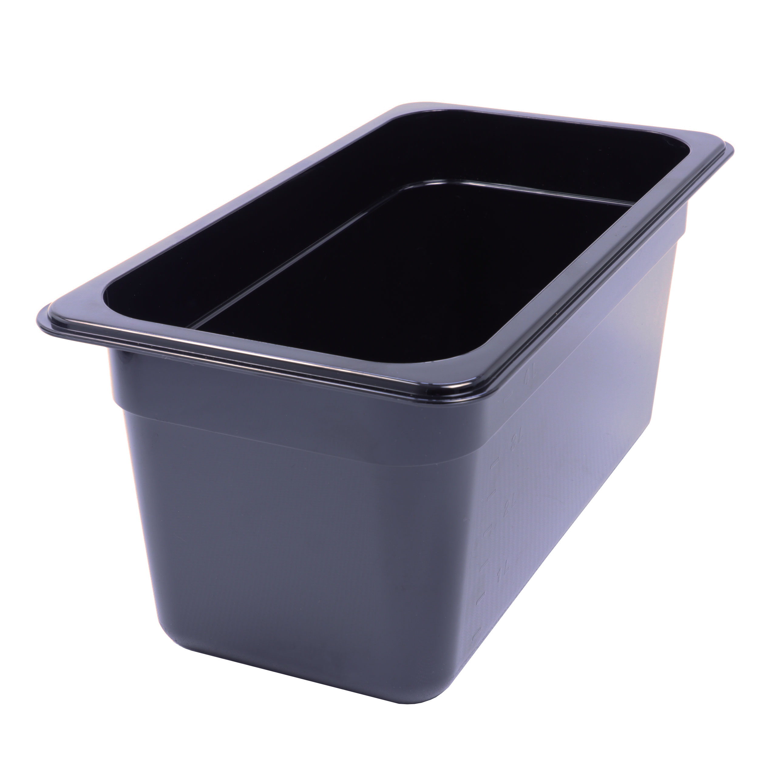 GN-Behälter aus schwarzem Polycarbonat können hygienisch sehr leicht gereinigt werden und sind zudem sehr hitzebeständig.