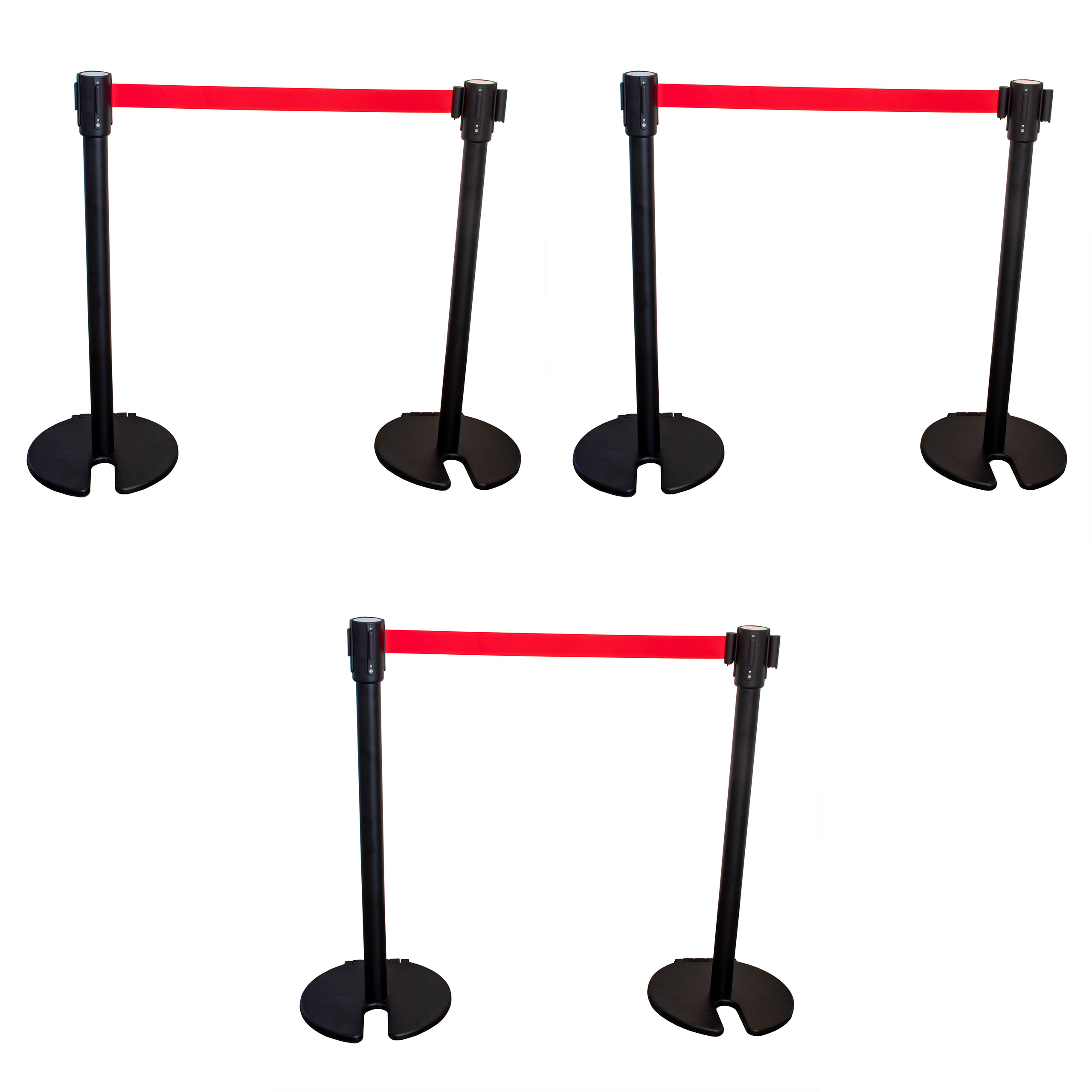 AcMax 6x Absperrpfosten Absperrständer schwarz mit roten 2 Meter Gurt mit Rollen - Band Personenleitsystem