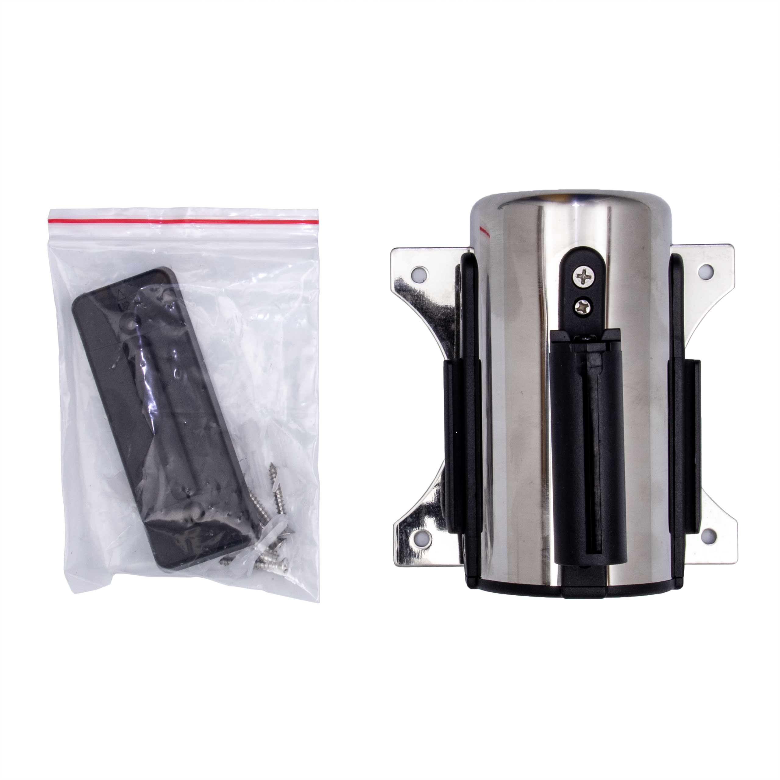 AcMax Absperrband silber Wandmontage mit roten einziehbaren 3 Meter Gurt - Band Personenleitsystem Abgrenzungsständer