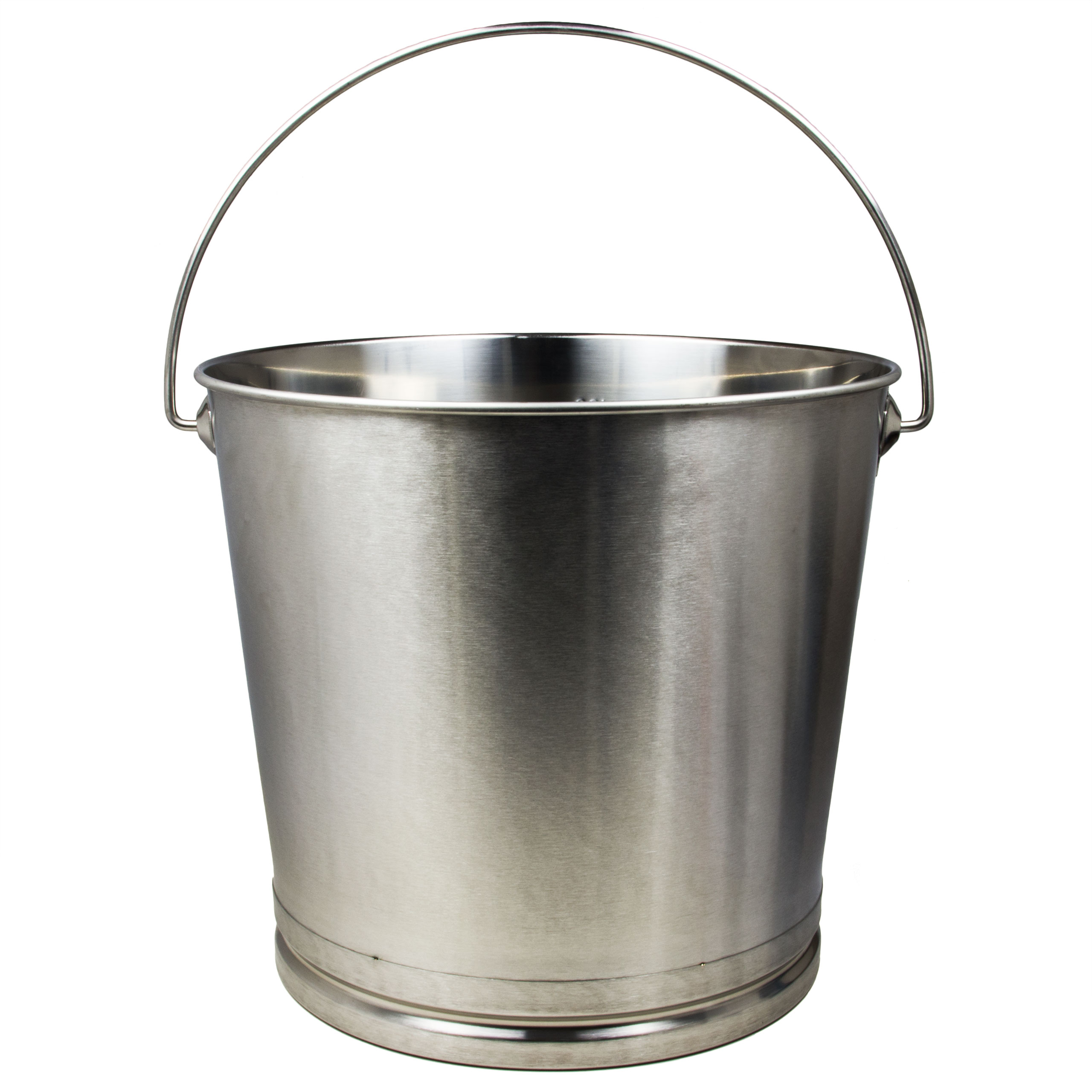 Eimer aus Edelstahl mit vielfachen Verwendungsformen wie zum Beispiel als Sektkühler, Eis-Eimer, Fleisch-Eimer, Fisch-Eimer, Schlachte-Eimer, Futter-Eimer, Milcheimer und ist somit bestens geeignet Transport von Lebensmittel. Eignet sich aber auch für die Gerichtsmedizin oder für Asche.