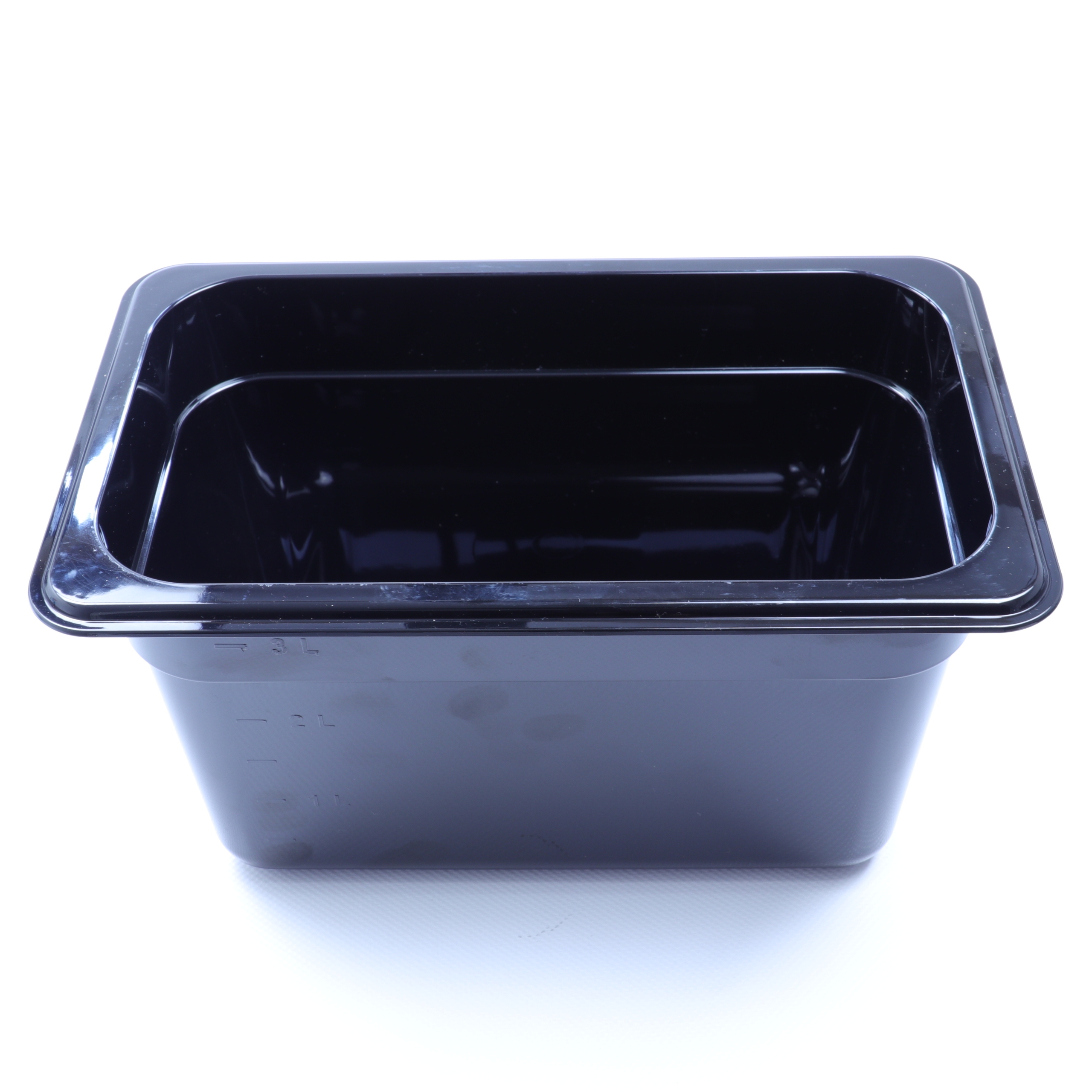 GN-Behälter aus schwarzem Polycarbonat können hygienisch sehr leicht gereinigt werden und sind zudem sehr hitzebeständig.