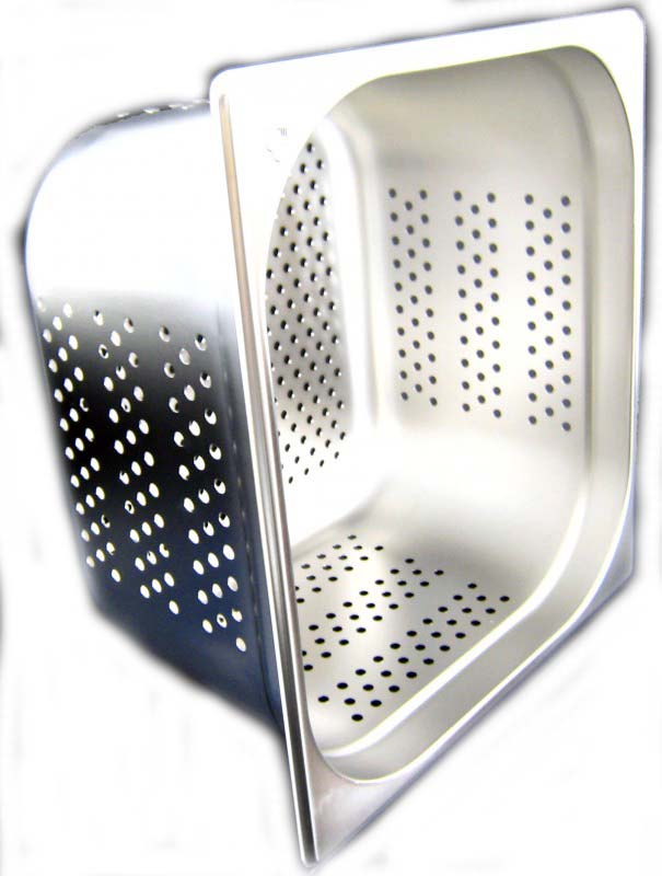 Gastronormbehälter GN 2/3 aus Edelstahl.gelocht Tiefe 200mm, Länge 355 mm, Breite 325 mm, 12,5 Liter, Materialstärke: 0,7mm. Die Behälter bestehen aus hochwertigem Edelstahl. Somit wird die Wärme gut geleitet und gleichmäßig verteilt. Auf Grund seiner glänzenden Silber-Optik wird das Gesamtbild jedes Buffets aufgewertet.