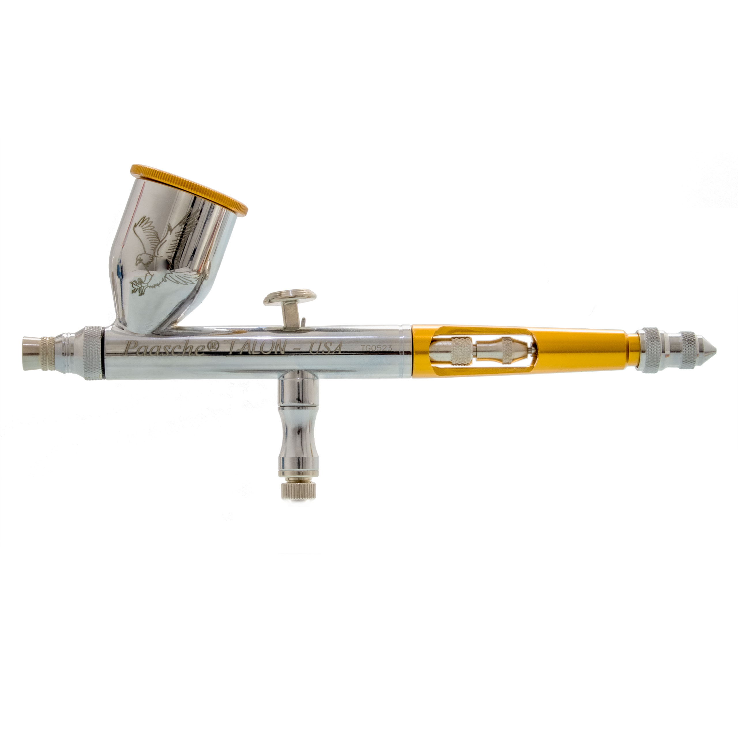 Die Pistole verfügt über einen verchromten Körper und eloxierten Aluminiumgriff für eine lange Haltbarkeit. Paasche Talon TG ist in den USA für Custom Painting und feine Details gebaut.