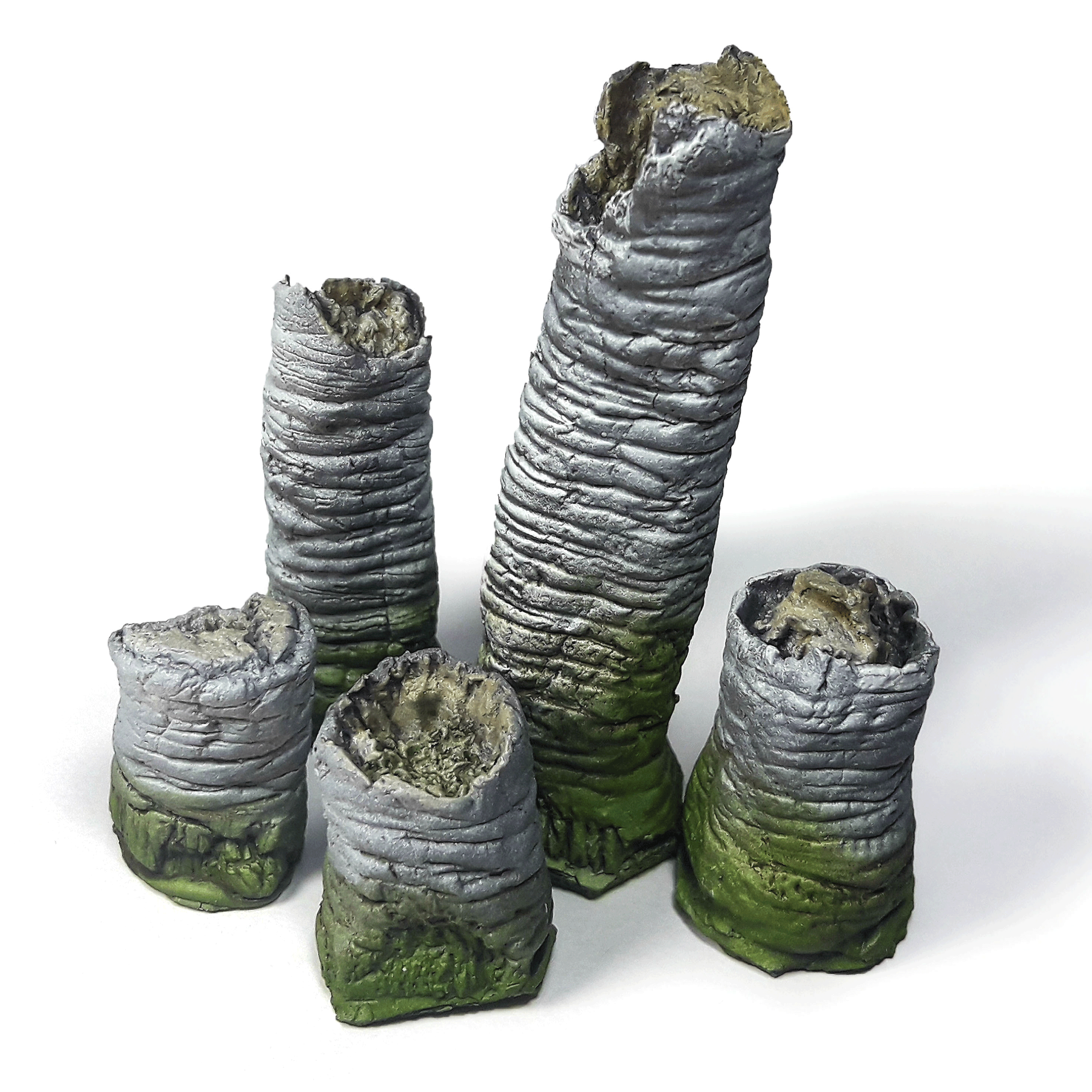 Five Mediterranean palm trunks in a variety of sizes and heights. Great definition and texture on the barks, as well as the characteristic inside fiber. Ideal to place on dioramas with a North African or Mediterranean ambience.