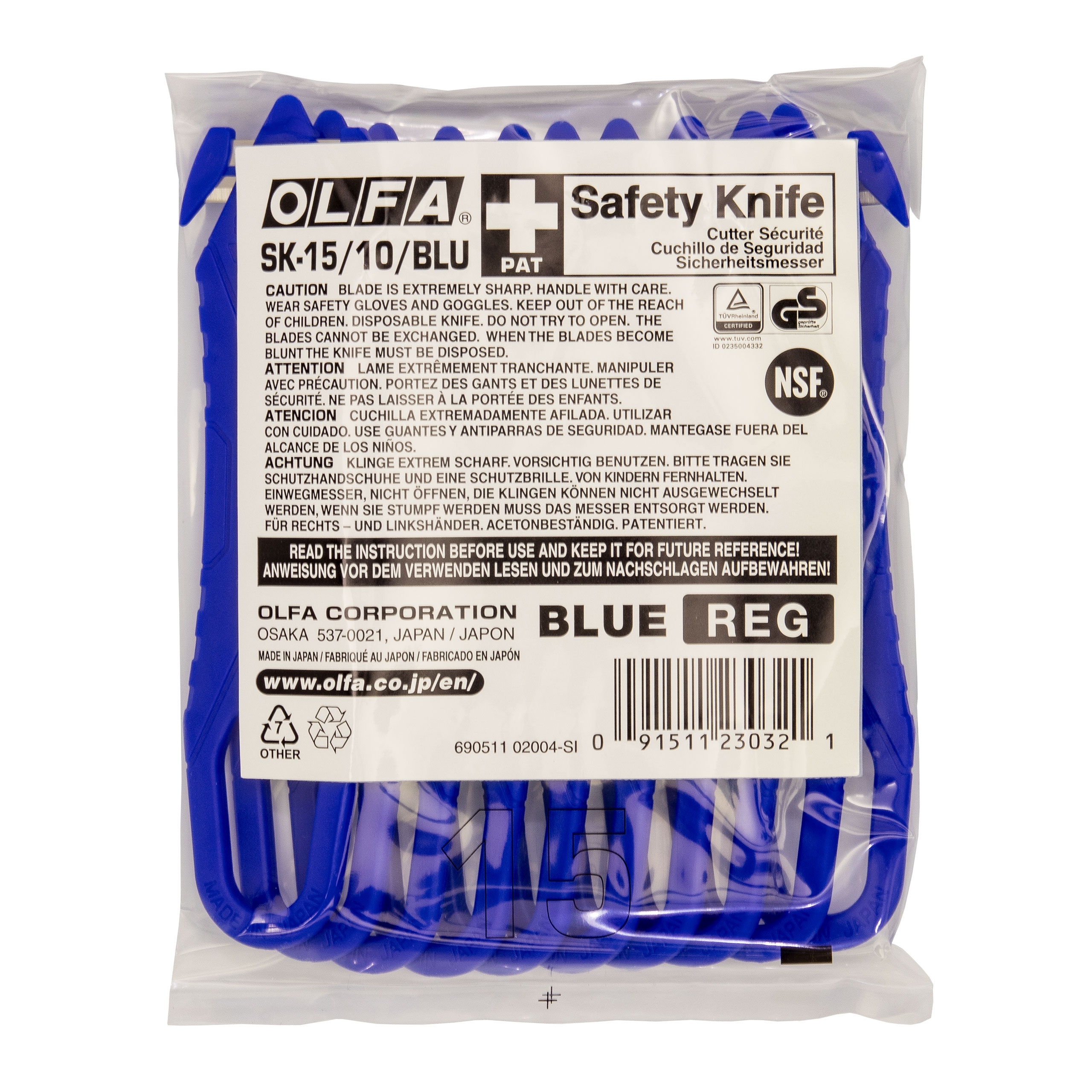 OLFA 10 Stück Cutter SK-15/10 Einweg-Sicherheitsmesser mit verdeckter Klinge