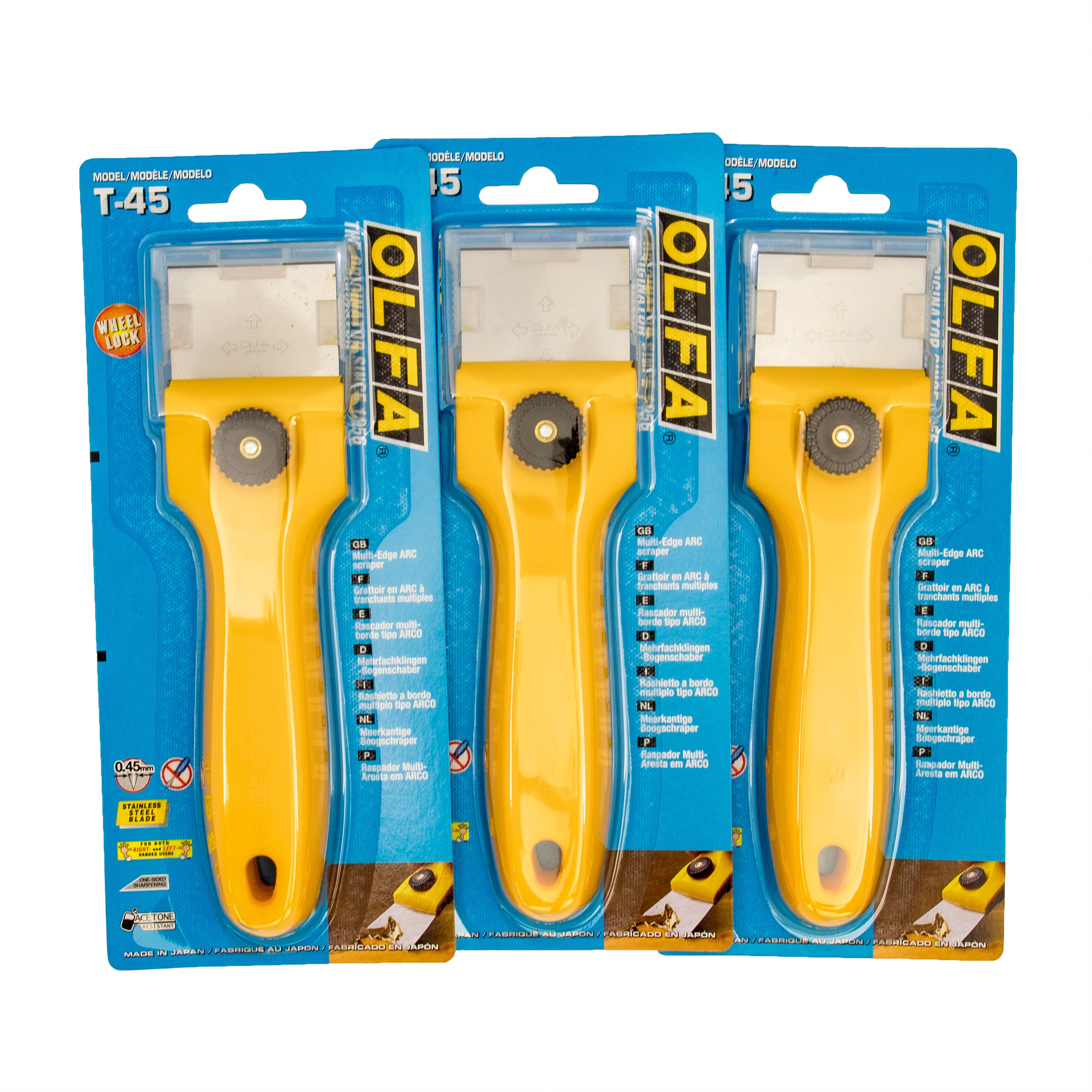 Olfa 3 Stück Schaber 45mm T-45 mit PP fiberglasverstärktem Griff