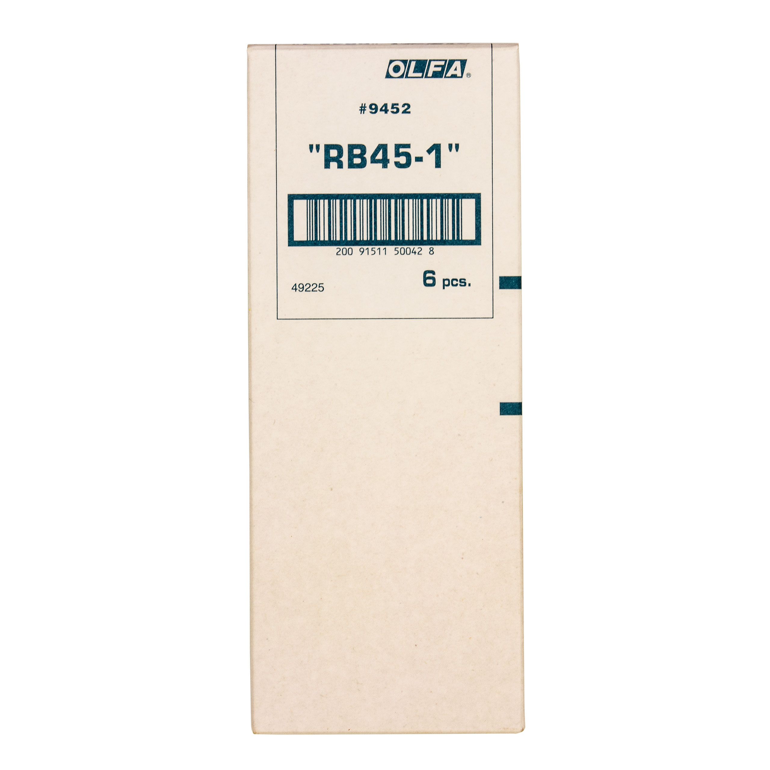 OLFA RB45H-1 – 45-mm-Klinge. Sie zeichnet sich durch längere Lebensdauer und anhaltende Schärfe im Vergleich zu herkömmlichen Klingen aus. Geeignet für: Messer der Serien RTY-2/G, RTY-2/C, RTY-2/DX und 45-C.
