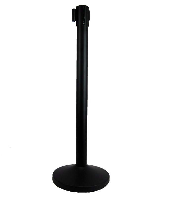 1x Absperrpfosten Absperrständer schwarz mit 3 Meter Gurt - Band Personenleitsystem