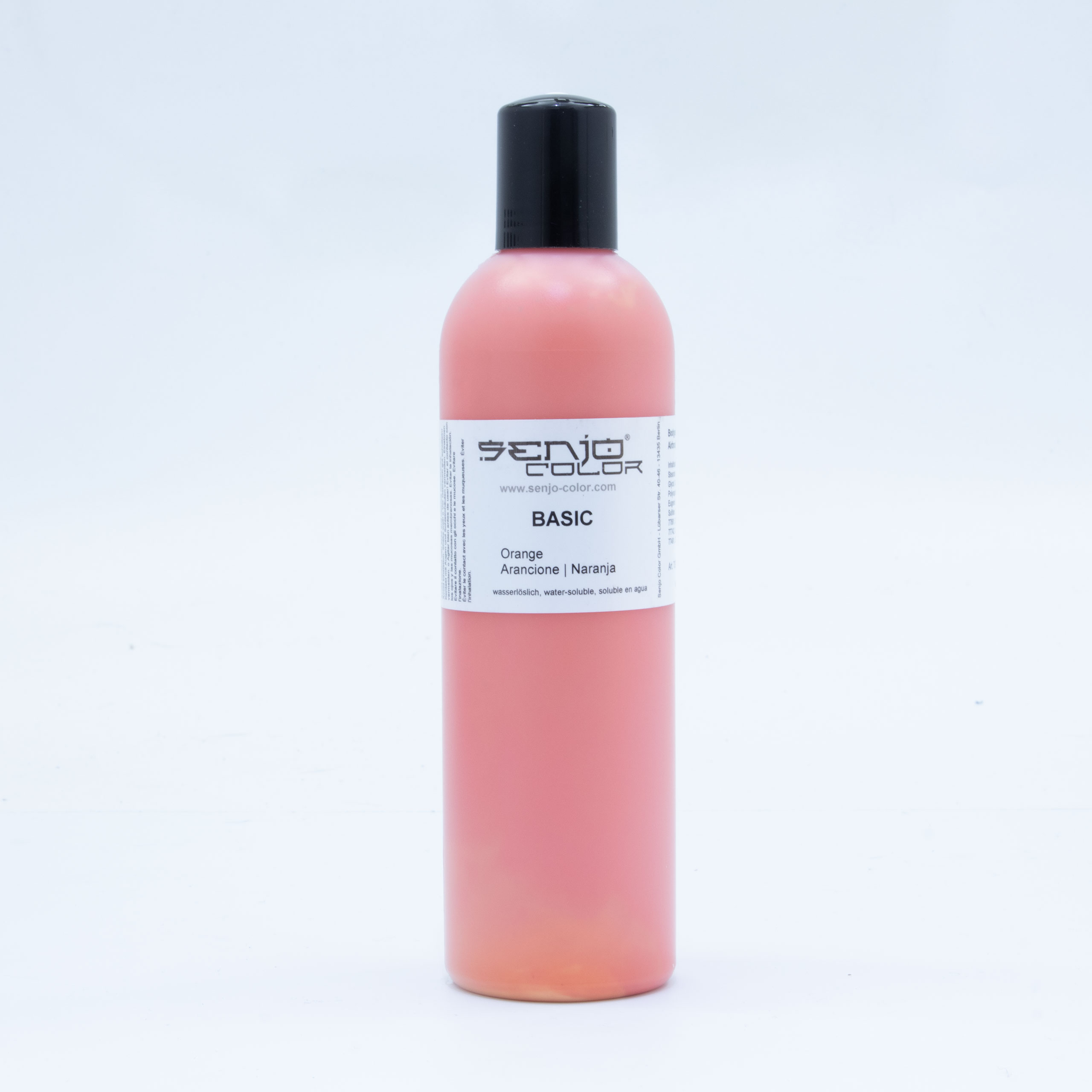 Senjo Color - Basic Körperfarbe ist ein wasserlösliches, hochergiebiges und sehr fein pigmentiertes Make-up zur Anwendung auf der Haut mittels Pinsel , Schwamm oder Airbrushpistole. Die Farbe lässt sich ab einem Arbeitsdruck von 0,6 Bar und einer Düsengröße ab 0,15 mm versprühen. Sie ist für Face- sowie Bodypaintings geeignet und mit Wasser und Seife abwaschbar.
