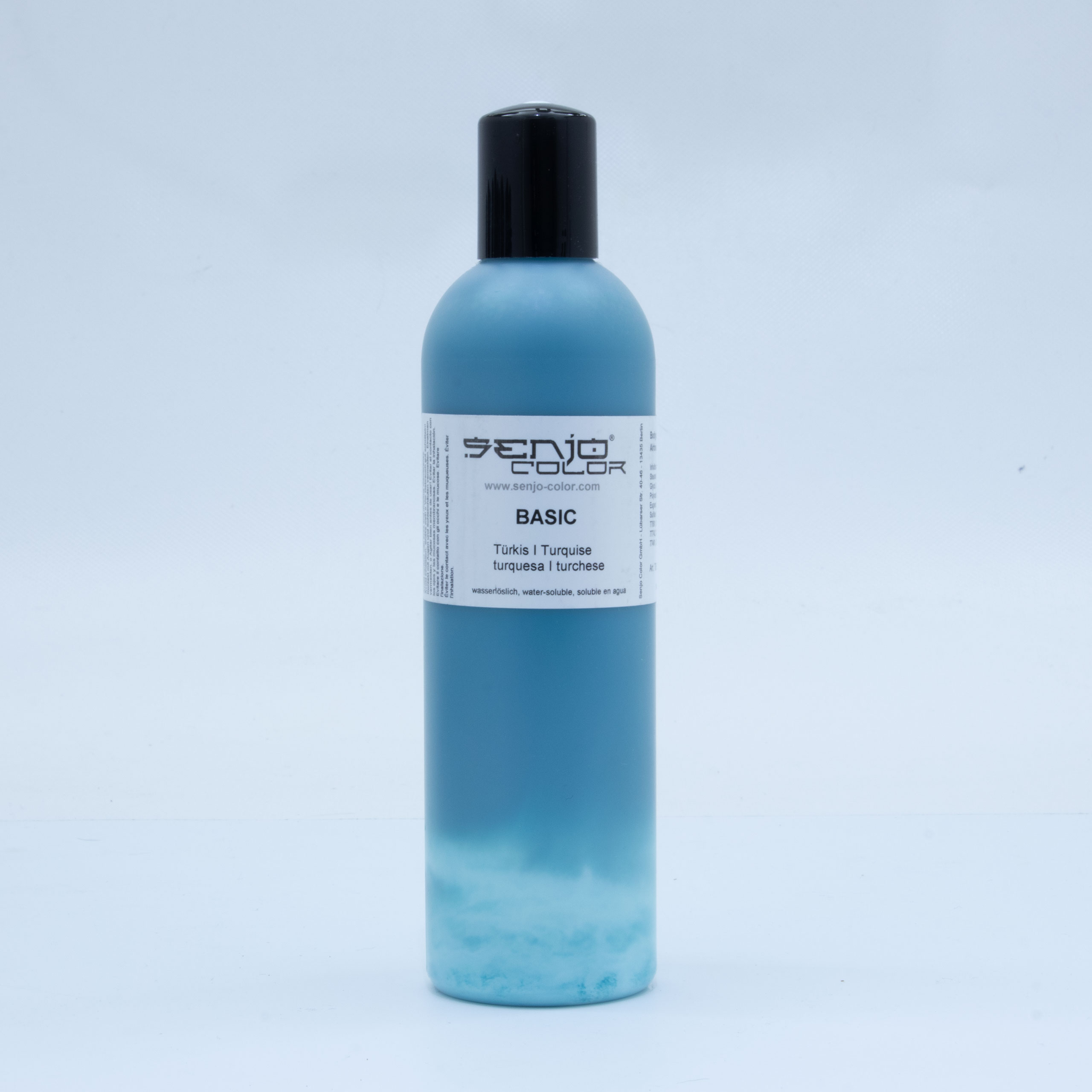 Senjo Color - Basic Körperfarbe ist ein wasserlösliches, hochergiebiges und sehr fein pigmentiertes Make-up zur Anwendung auf der Haut mittels Pinsel , Schwamm oder Airbrushpistole. Die Farbe lässt sich ab einem Arbeitsdruck von 0,6 Bar und einer Düsengröße ab 0,15 mm versprühen. Sie ist für Face- sowie Bodypaintings geeignet und mit Wasser und Seife abwaschbar.