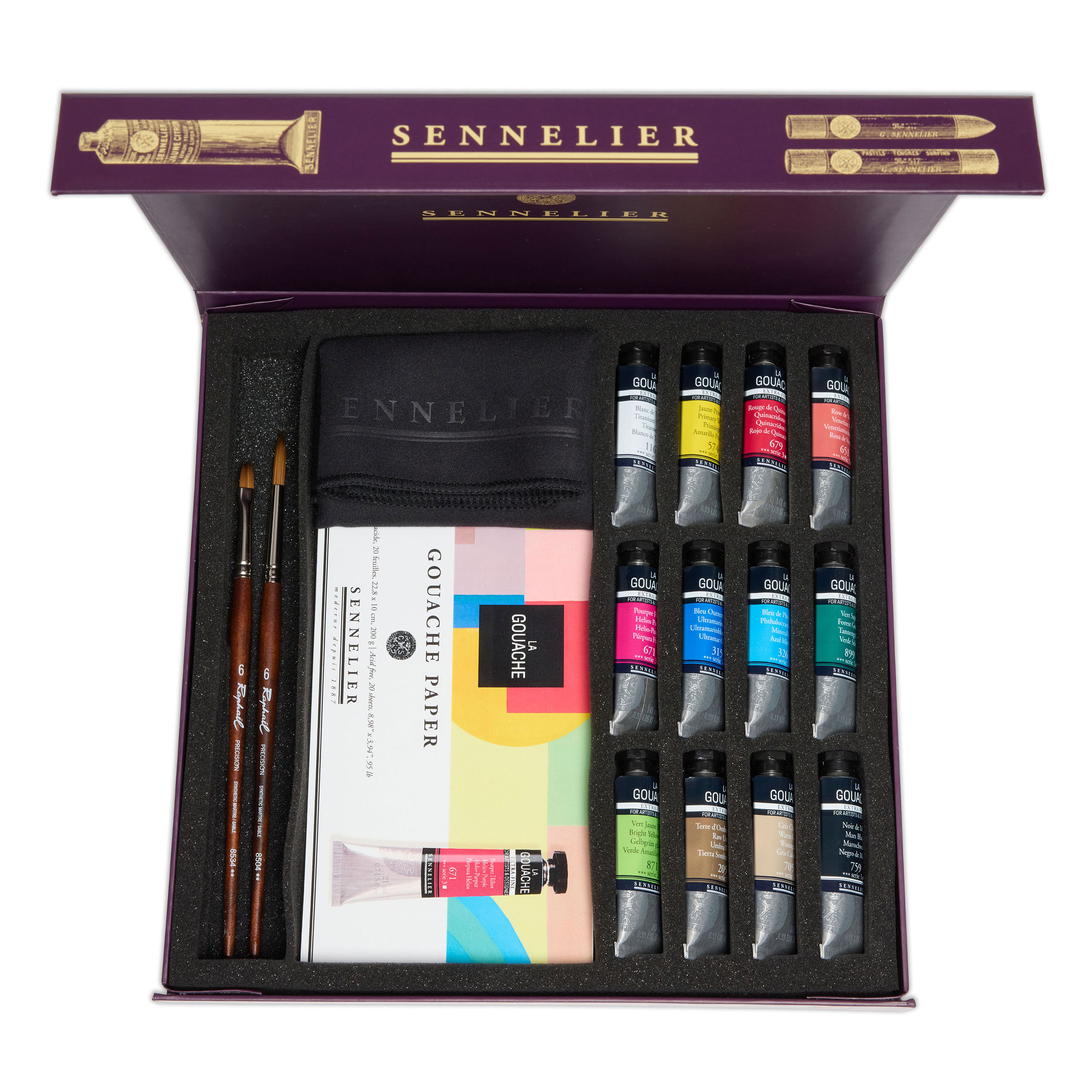 Sennelier Magnet Geschenkbox - Gouache 12x10ml - Block Pinsel Tuch - N130527