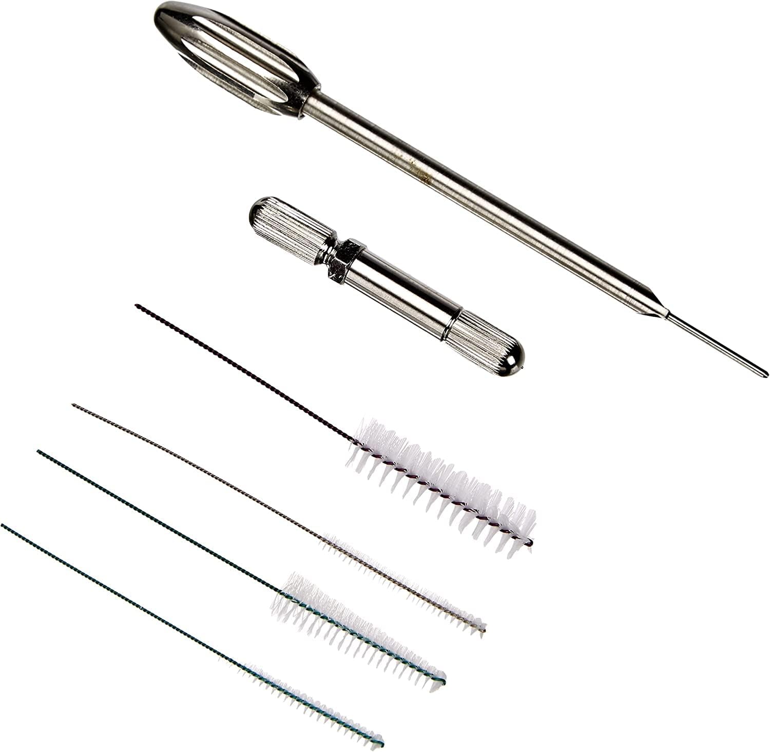 Dieses Set beinhaltet neben der Düsenreinigungsnadel, der Reinigungskappe und mehreren Reinigungsbürsten auch die wichtigsten Dichtungen
